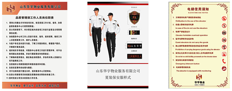 對服務(wù)項(xiàng)目建立人性化服務(wù)標(biāo)識系統(tǒng)(CIS)。完善的標(biāo)識系統(tǒng)是物業(yè)區(qū)業(yè)主、外來參觀人員明亮的眼睛,也是物業(yè)管理的形象工程。根據(jù)公司的標(biāo)識系統(tǒng)管理規(guī)范,我們將建立公眾標(biāo)識,如道路指引標(biāo)識、物業(yè)區(qū)標(biāo)志、消防標(biāo)識、綠化標(biāo)識、設(shè)備設(shè)施標(biāo)識、景觀標(biāo)識和其它公眾標(biāo)識等;其次,我們將設(shè)立服務(wù)標(biāo)識,如公司標(biāo)識、服裝標(biāo)識、工作牌、辦公標(biāo)識等。具體標(biāo)識樣式節(jié)選如下: